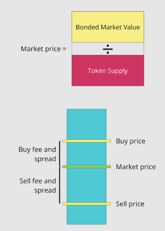 A buyer will pay the market value of the tokens, adjusted by the buy spread, plus the creator buy fee plus a demand fee if the new supply exceeds the target supply (if applicable).