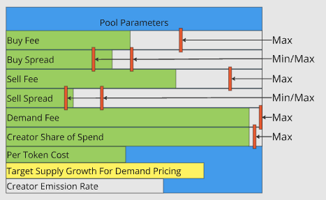 - Target Supply - Scales buy cost when target supply is exceeded by the ratio of new supply to expected supply - charged as a "demand fee".